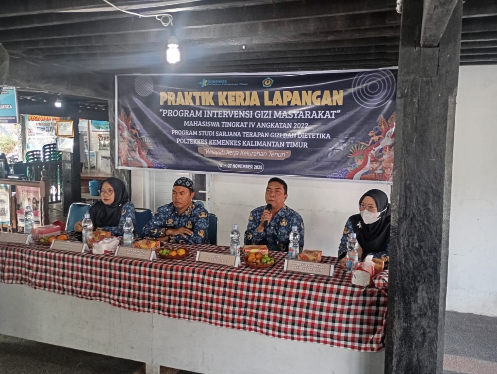 Senin, 17 November 2025, SAMBUTAN..Praktik Kerja Lapangan Program Kerja Intervensi Gizi Masyarakat Mahasiswa Tingkat IV angkatan 2022 Program Study sarjana fenipar dietetika Poltekes Kemenkes Kaltim yang di pimpin Bapak Sekretaris Lurah PAHLEVI,SE.